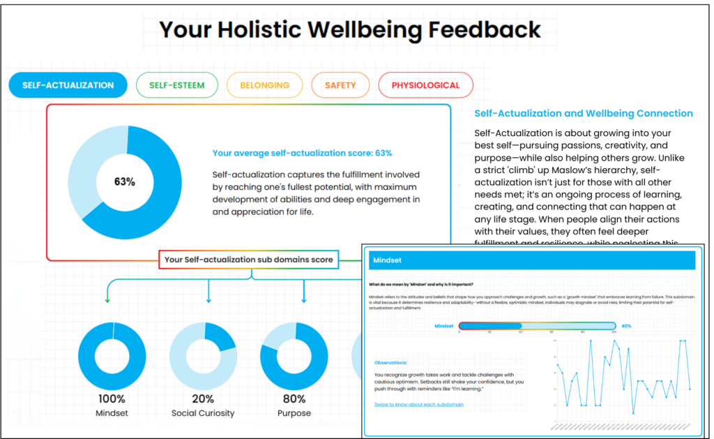 • A science-backed, highly reliable psychometric model rooted in Maslow’s Hierarchy of Needs—designed specifically to measure and visualize holistic wellbeing