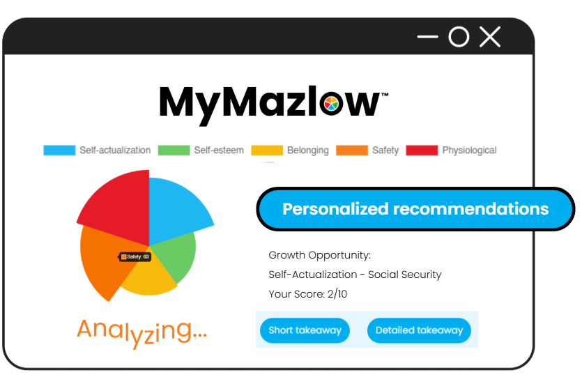 MyMazlow™, our AI Wellbeing companion, engages employees in structured reflection based on their lowest-scoring domains, making Pietential an effective Employee Engagement System.
