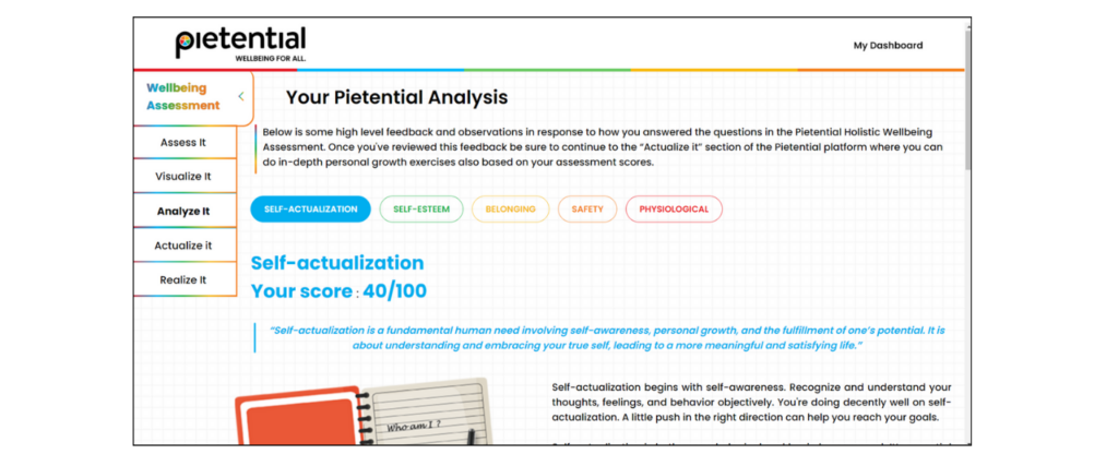 - Assess and benchmark wellbeing across five key domains: Physiological,Safety, Belonging, Self-Esteem, and Self- Actualization.